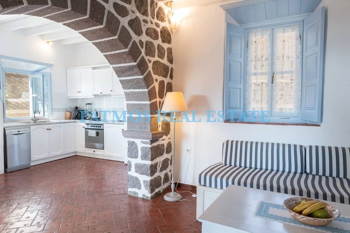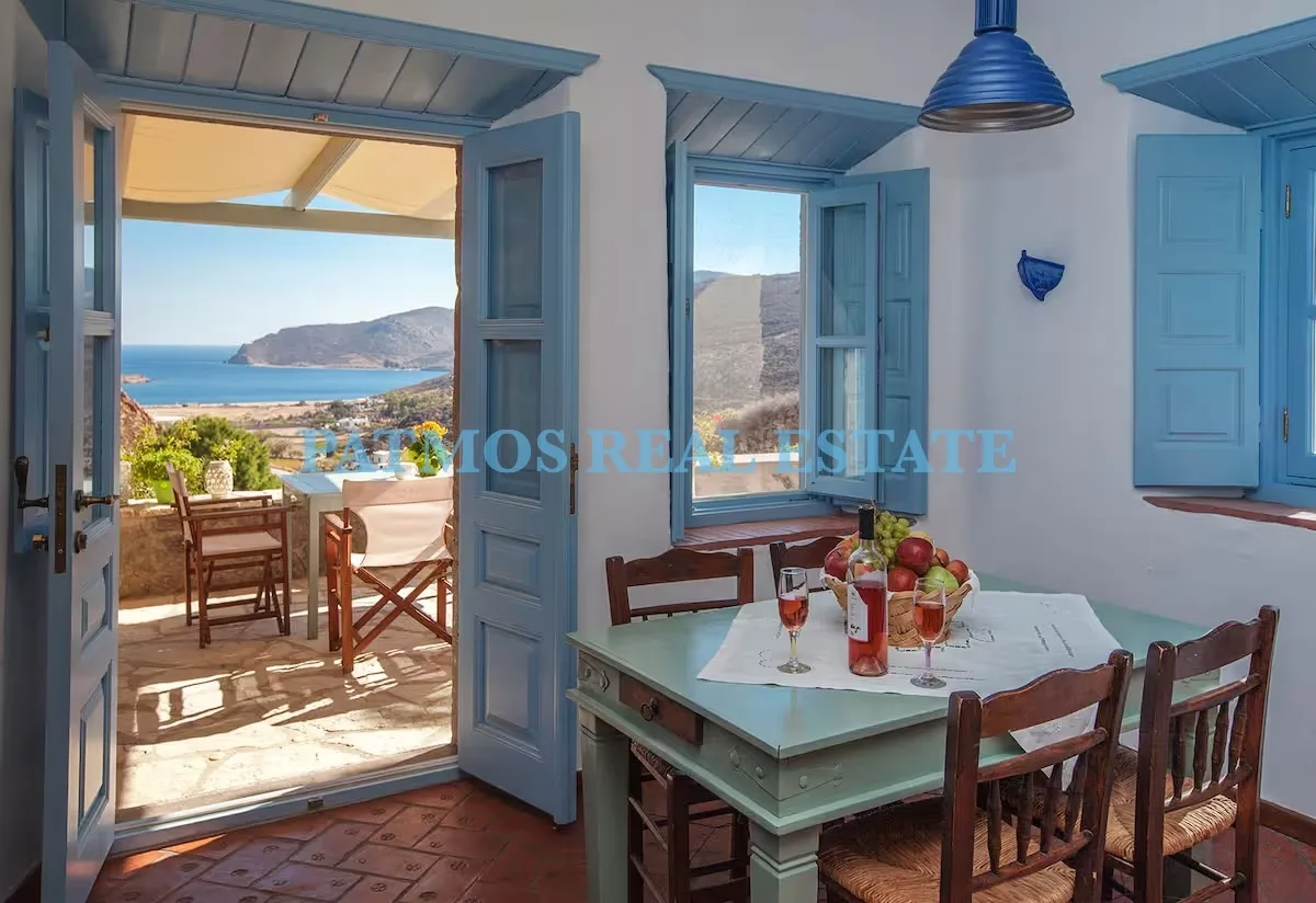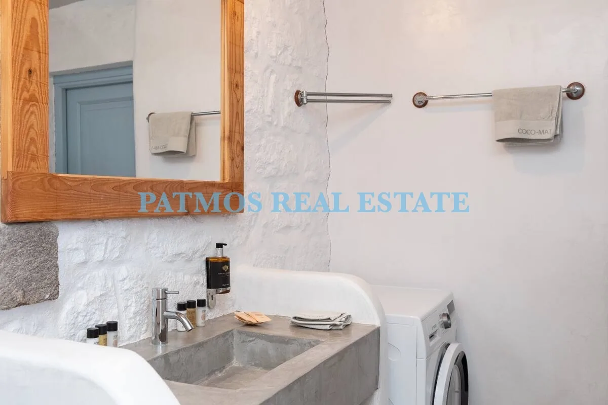The property features three comfortable bedrooms and three bathrooms, including an exterior bathroom on the first floor inspired by the traditional houses of Chora, adding a touch of heritage. A fully equipped kitchen, bright living areas, and a private terrace with breathtaking views of the Aegean Sea and surrounding landscapes create an inviting atmosphere.